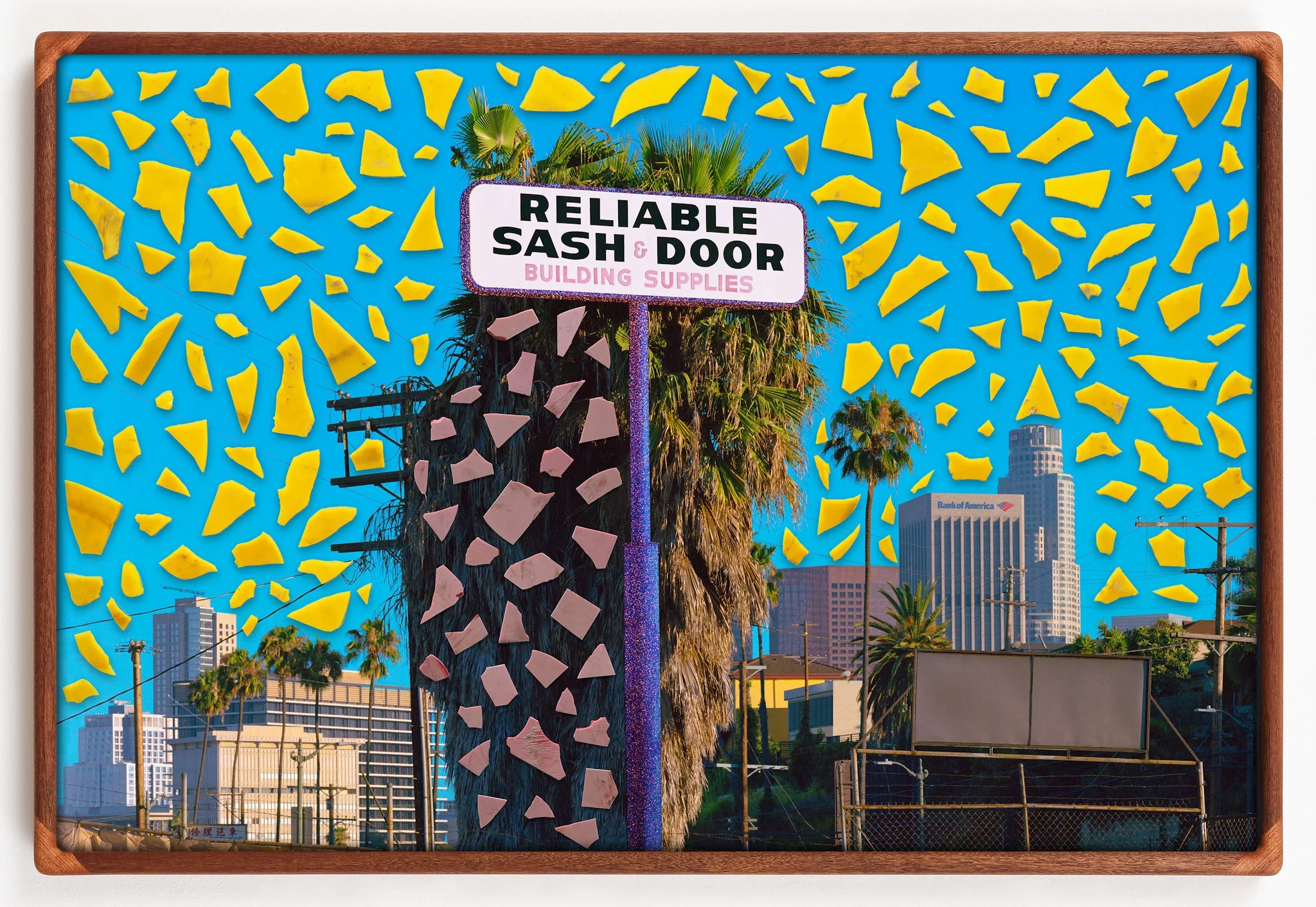 Carving & Historic Sunset Blvd Acrylic Signage (Shattered by Excavator) on C-Print,